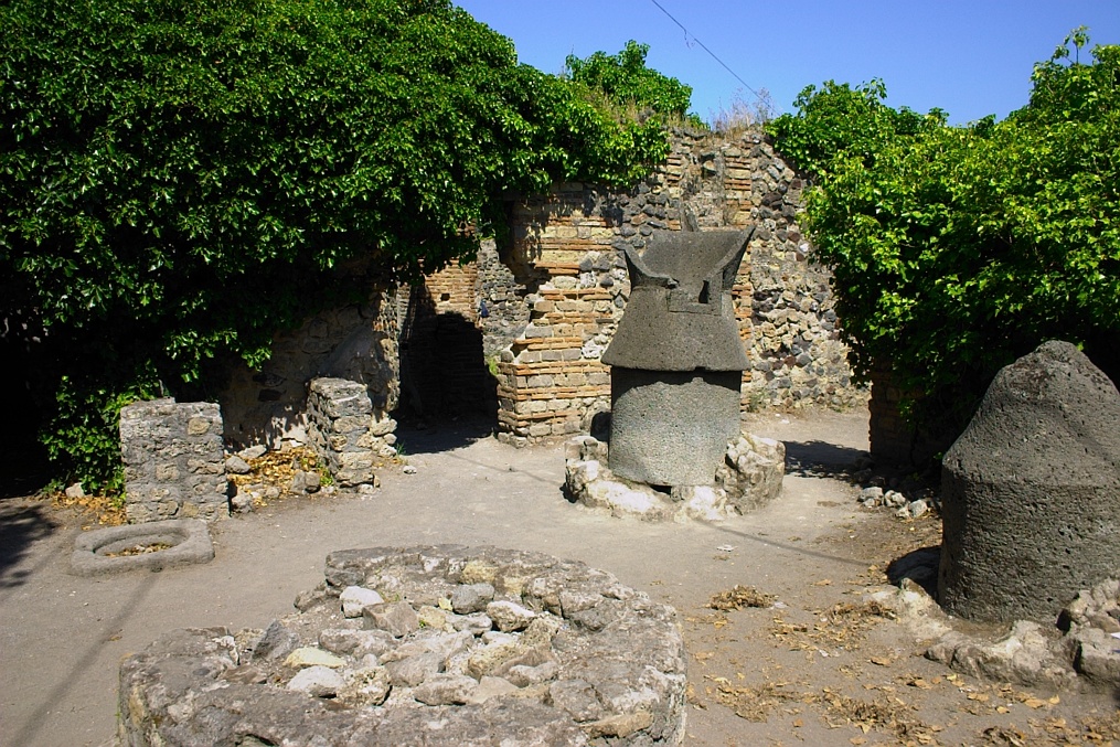 We walked in the ashes of a city Ovens greened with ivy Olive jars full of stones. Game fluttered on cracked walls We stepped over the holes where box hedges Burned where they stood. Time stood still The olive sellers curled up cradled by ash Outside the brothel Soft arms grey and hot Breath drawn hard The bath-house full of glass and death masks. A silent garden that was a bakery A coach party where once they whispered to the gods. I soak the ashes from my feet.